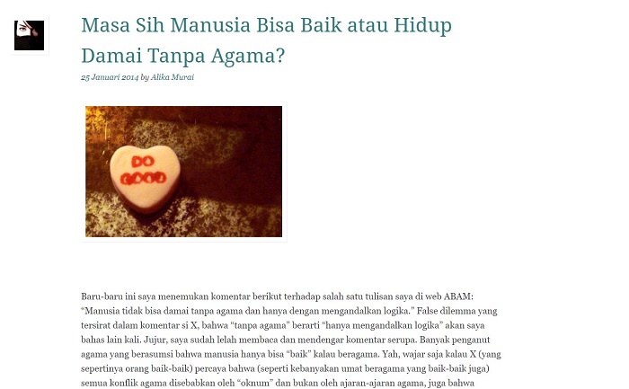 Many online discussions of religion emerged in the 2010s. Among them were Dialog Ateis Indonesia (DAI), Ateis Indonesia (AI), and Komunitas Ateis Indonesia (KAI). Emphasising freedom of speech, they allowed discussion to flow with minimal rules. While obviously a good thing, we can imagine how quickly these discussions could turn ugly, especially when the nature of the subject was combined with anonymity. This type of forum remains hugely popular among people who love to express their opinion. New topics and replies can appear almost every second.