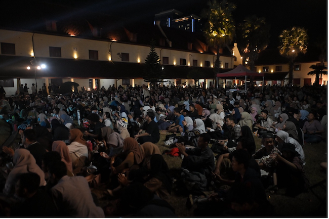 Every evening of the festival a program titled ‘Under the Poetic Stars’ featured on the main outdoor stage. Invited guests presented poetry, performance, and music. On opening night, the program kicked off with MIWF’s leadership team taking turns to read out poetry by Palestinian poets, translated into Bahasa Indonesia – a statement of transnational, translational solidarity. Similar activist principles are embedded in many other aspects of the festival; including a commitment to transparency, to zero waste and low carbon emissions, and a rule against ‘all-male panels’. On subsequent nights, this space ‘under the poetic stars’ was given to creatives both emerging and established to showcase a variety of talents.