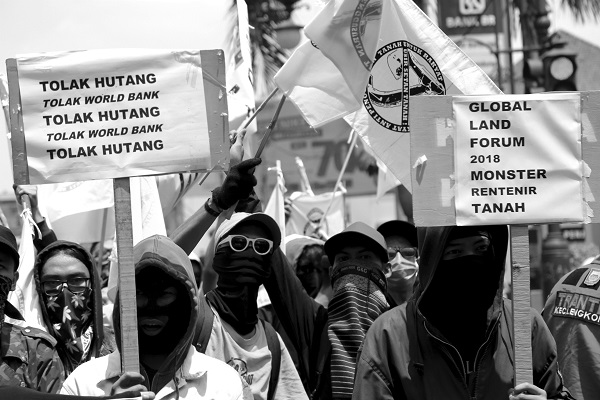 On 24 September 2018, hundreds of people demonstrated in front of Gedung Merdeka in Asia-Afrika Street, Bandung, West Java, where the Global Land Forum (GLF) 2018 was happening. This was the eighth gathering of the forum since the inaugural conference in Rome in 2003. The opening of the three-day event coincided with Indonesia’s National Peasants’ Day.