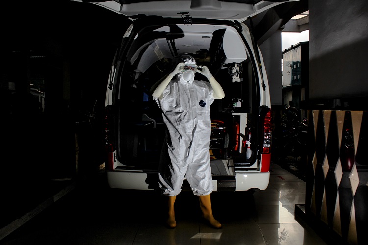 Banners, murals and signs have sprung up on city streets, creating a very public reminder of efforts to combat the spread of the virus. The pandemic has also left its mark on the urban landscape in other ways: the Wisma Atlet in Kemayoran, used for the Asian Games in 2018, has been turned into a make-shift hotel for COVID-19 patients in self-isolation. As Ahmad’s photos show, cemeteries too have been filled to overflowing with those who have died from the coronavirus. New cemeteries have had to be built; providing grim material evidence of the virus’s reach and in turn rendering statistics on infection numbers somewhat irrelevant.
