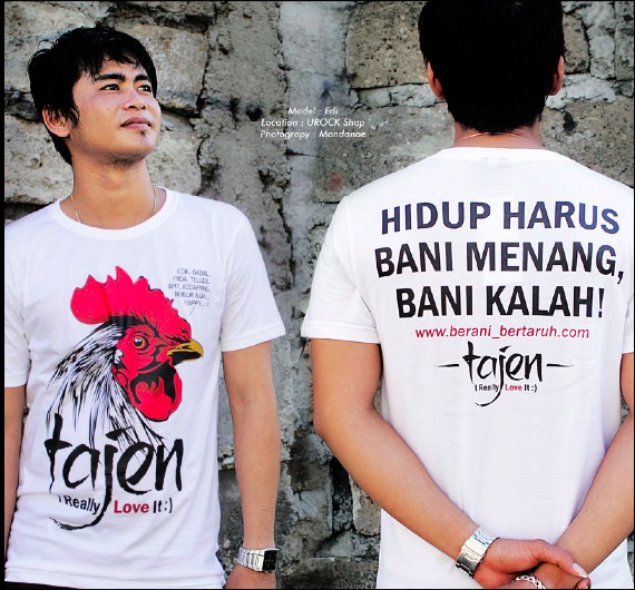 But Nanoe Biroe is not only a vital figure in the history of Balinese popular music. He also plays a part in the history of Balinese literature. As well as playing live shows and selling records, he is a widely published writer, but not in the conventional sense. The medium of his printed words is not paper, but fabric. Nanoe Biroe owns a successful merchandise line, and he employs t-shirts to air critiques and to proffer suggestions for resolving social problems. T-shirts are writing spaces for Nanoe Biroe.